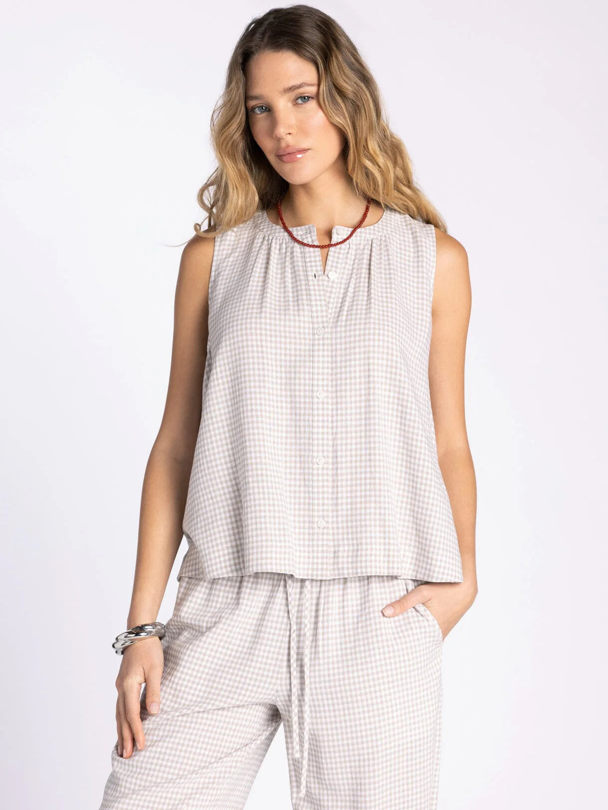 Effortless layering meets timeless style with the Caelis Tank. Featuring a classic round neckline and full button front closure, this versatile piece transitions seamlessly from casual to polished. The button front allows for easy adjustments and styling flexibility, making it perfect for wearing solo or as a chic layering piece under jackets and cardigans. A wardrobe essential that works harder than it looks.