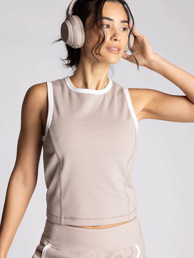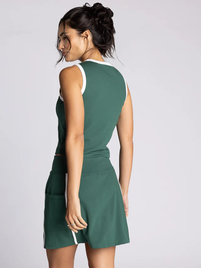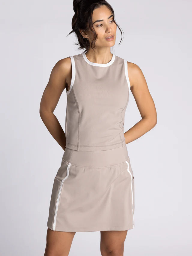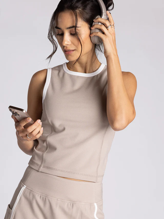 So sporty and soft, this sleek tank is featured in a cropped fit and fitted silhouette with ribbed knit detailing and contrast piping details. Make it a match with the Carlton Skort.