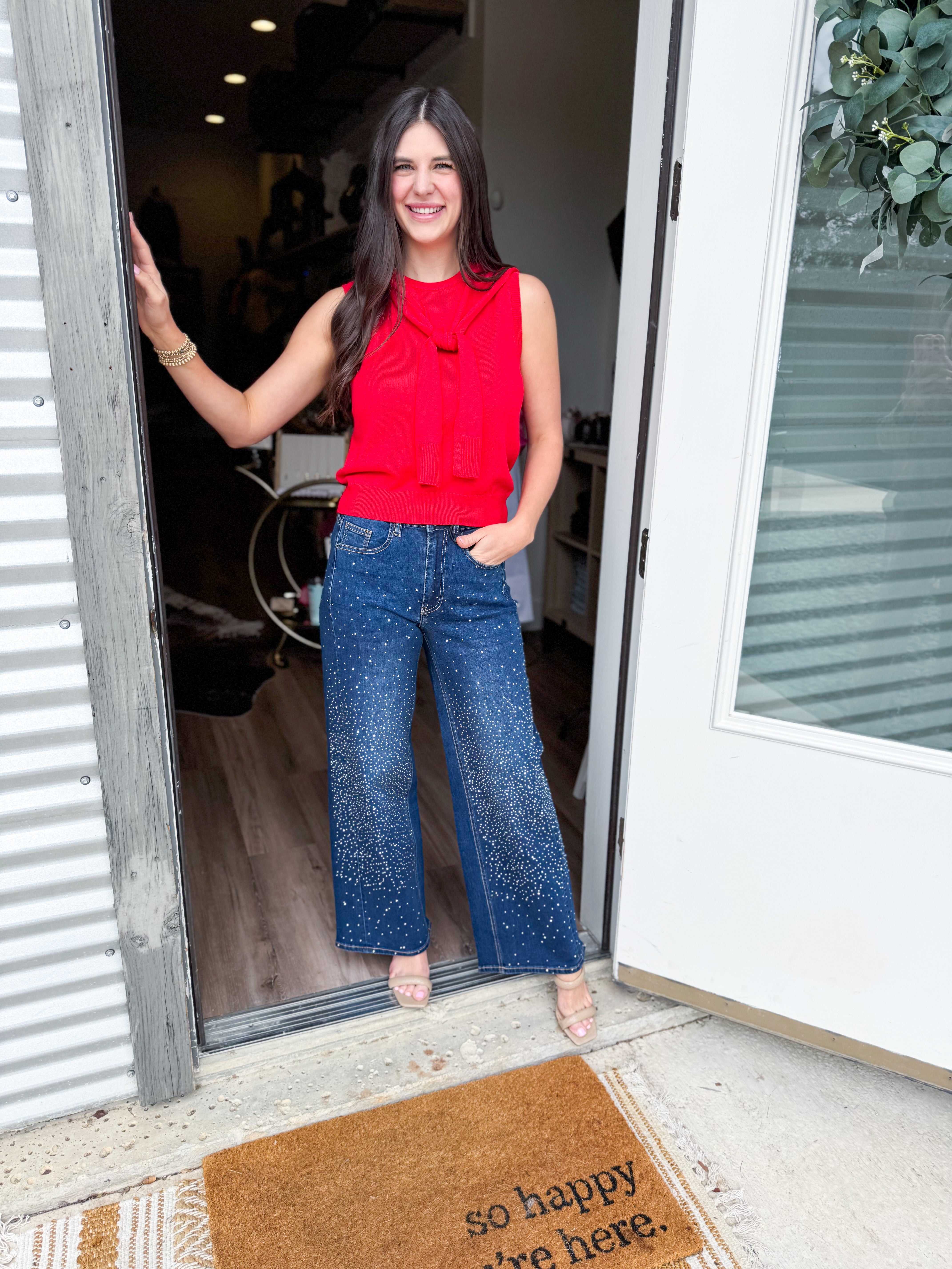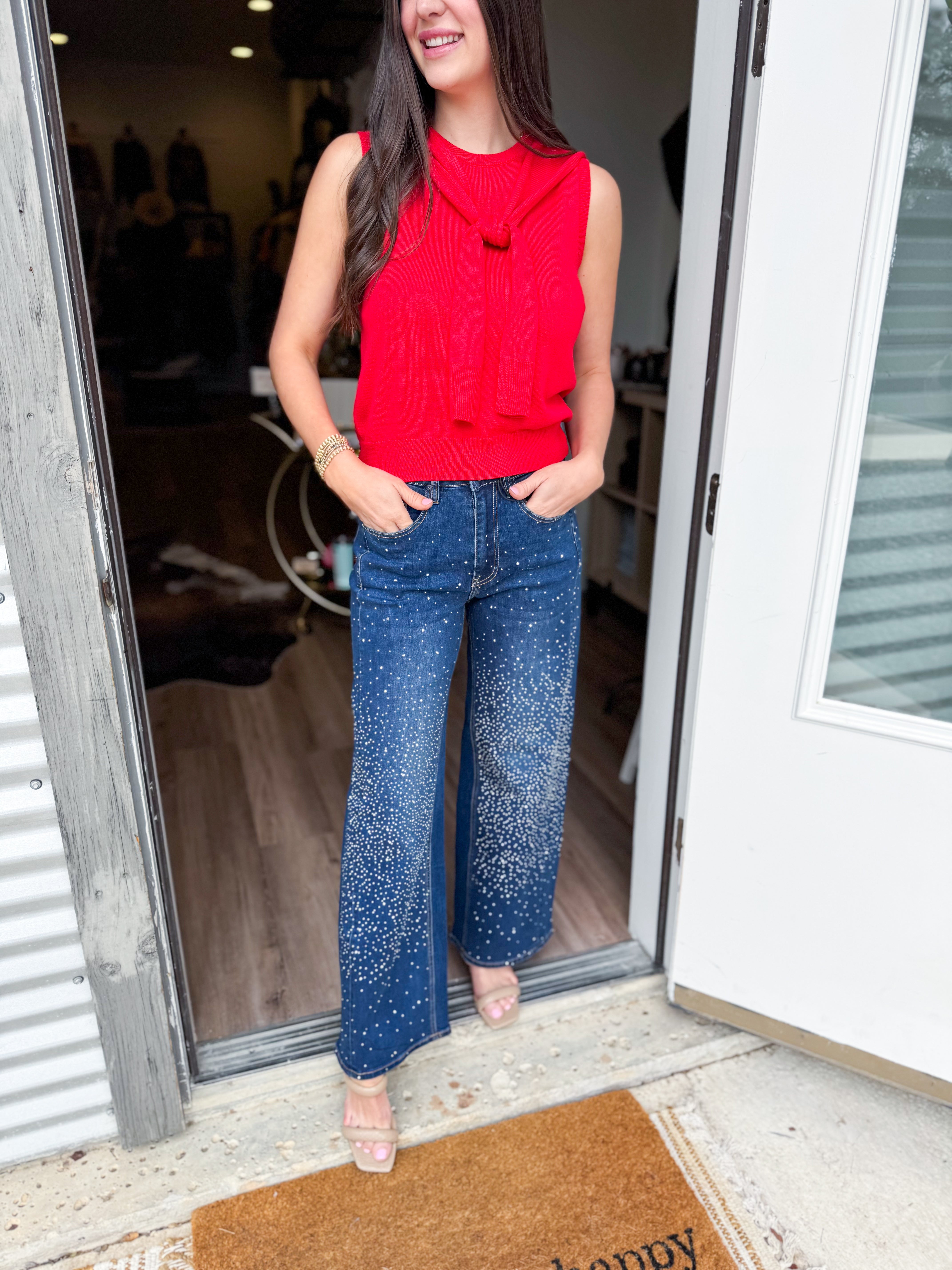 This sleeveless knit features faux sweater sleeves that tie gracefully at the front, giving you a sophisticated layered look without the bulk. The thoughtful design lets you adjust the tie for a customized fit that works with your body and your mood. Pair it with basics or dress it up—this versatile piece adapts to whatever your day calls for.
