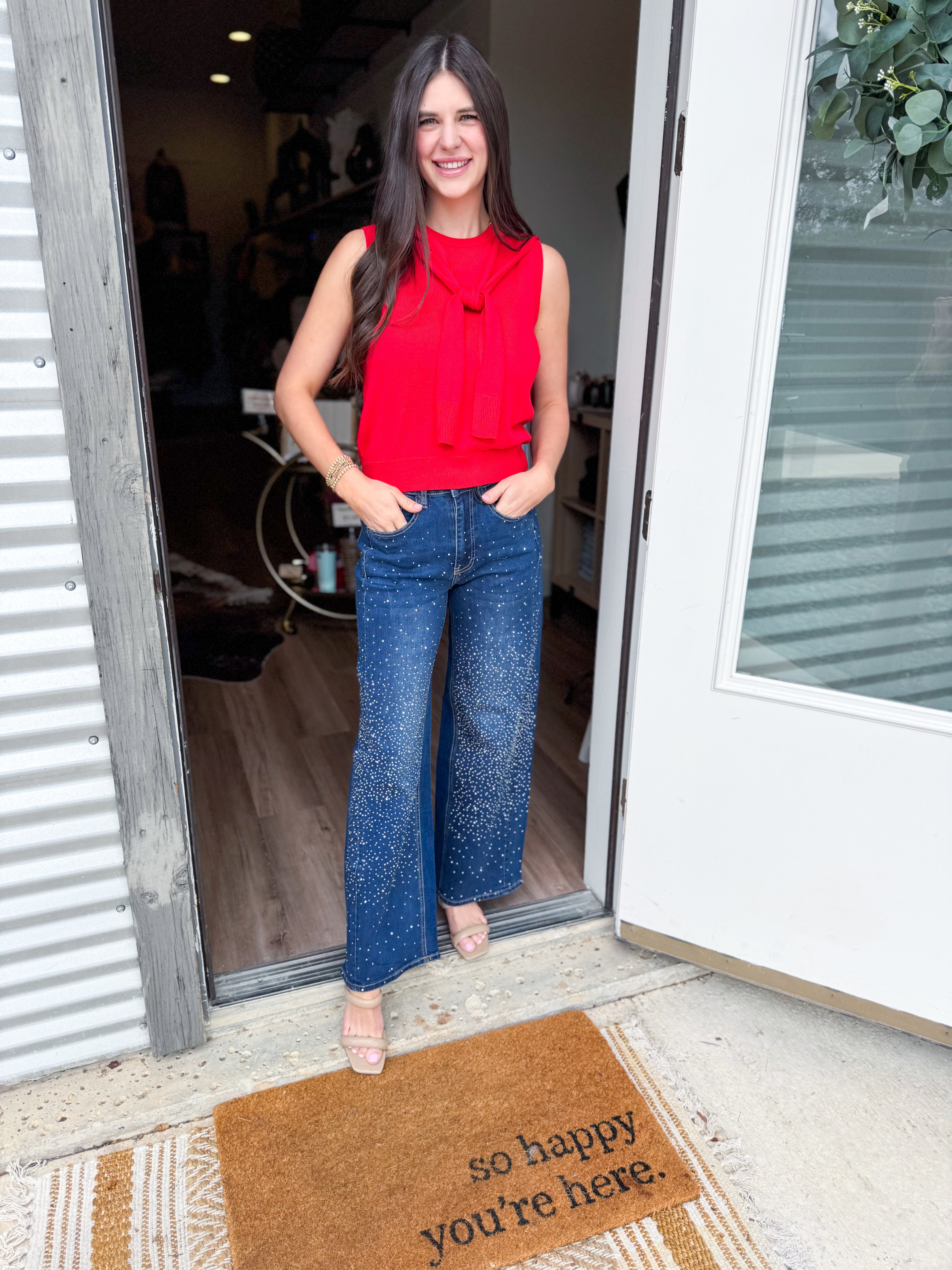 Step out in style with these fabulous wide-leg denim jeans sparkling with rhinestone embellishments that catch the eye! With a flattering high-rise waist and a relaxed silhouette they combine comfort with a bold fashion statement. The shimmering details bring a chic touch making these jeans incredibly versatile for any occasion. Perfect for elevating your casual outfits or infusing a unique flair into your evening looks.