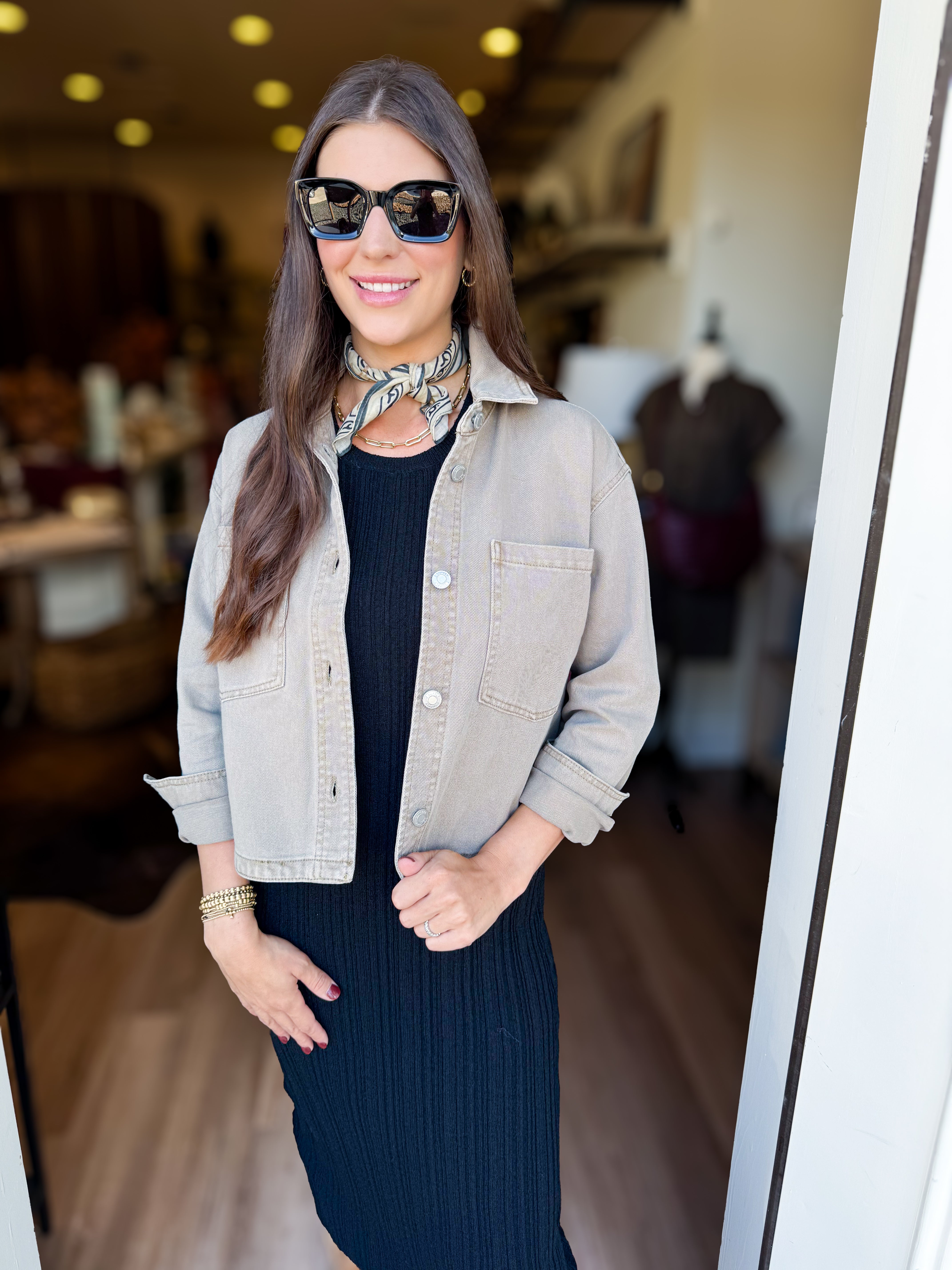 Soft and ultra comfortable, the All Day Cropped Denim Jacket is sure to become an everyday part of your wardrobe. Made using our new 100% cotton non-stretch denim, this relaxed jacket features metal buttons, a collared design, large front pockets, and a curved hem for a flattering look.