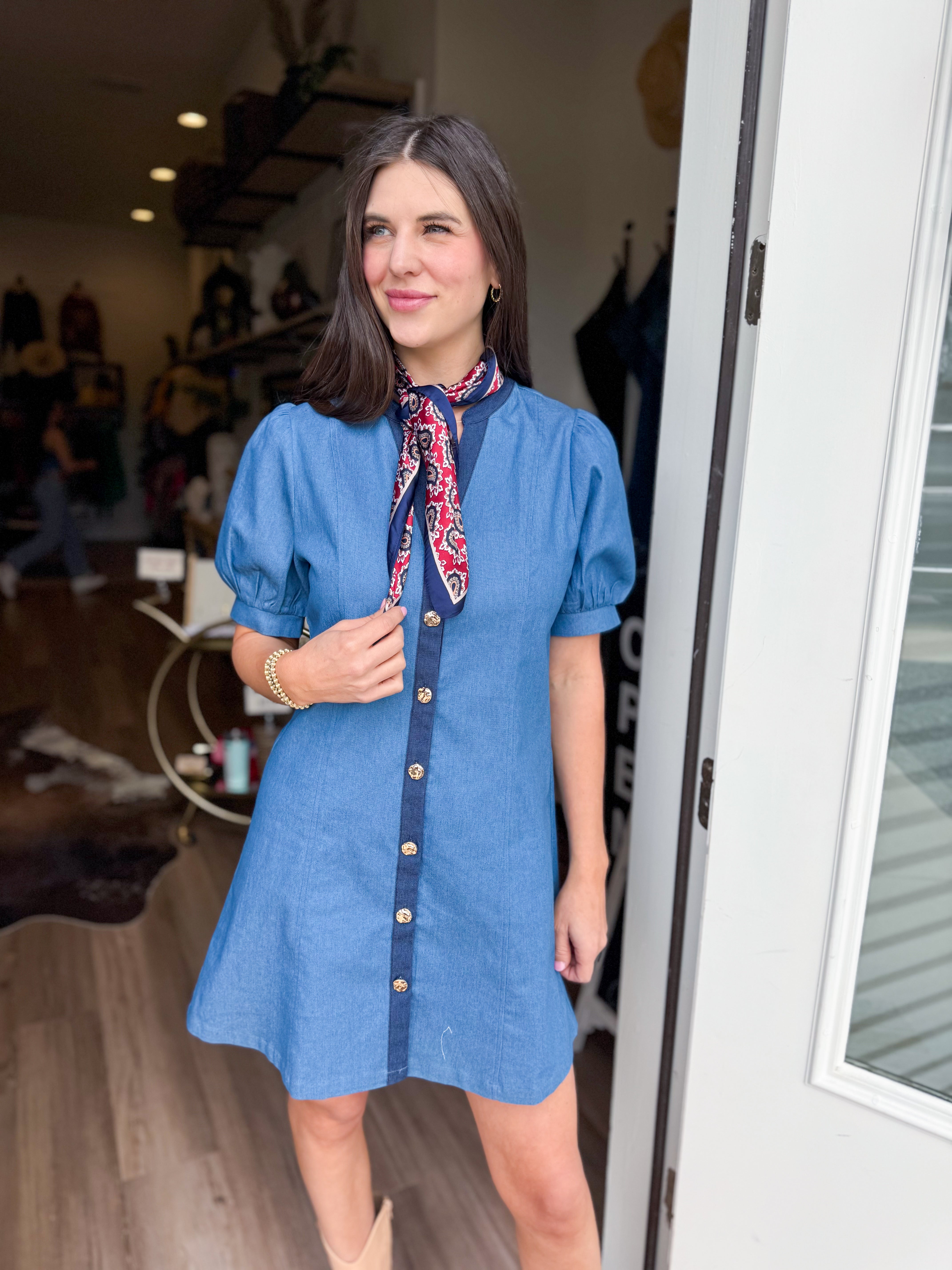 Introducing the Cassidy Denim Mini Dress—a wardrobe essential that brings effortless Southern charm to your everyday style. Crafted with classic denim construction and finished with thoughtful button detailing, this mini dress offers a polished look that transitions seamlessly from casual outings to weekend gatherings. The timeless silhouette flatters various body types while the durable fabric ensures lasting wear. Perfect for pairing with sneakers, boots, or sandals, the Cassidy is your go-to piece for creating versatile, put-together outfits with minimal effort.