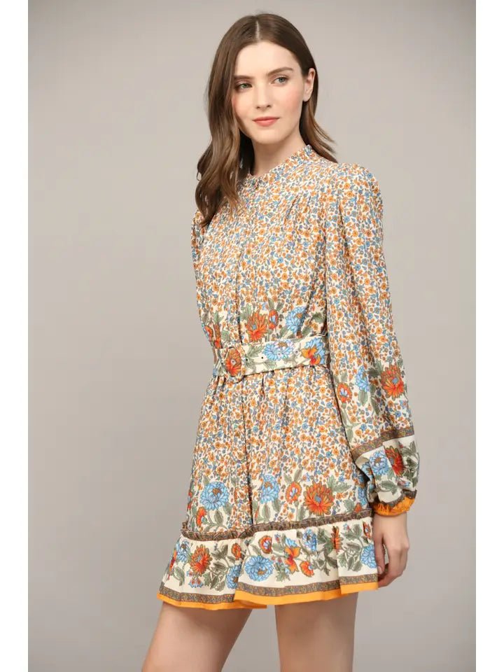The Jane Dress combines timeless elegance with modern comfort. This belted dress features a striking border print that draws the eye, while the front button detail adds practical charm and easy styling versatility. The cinched waist creates a flattering silhouette that works for everything from casual outings to special occasions