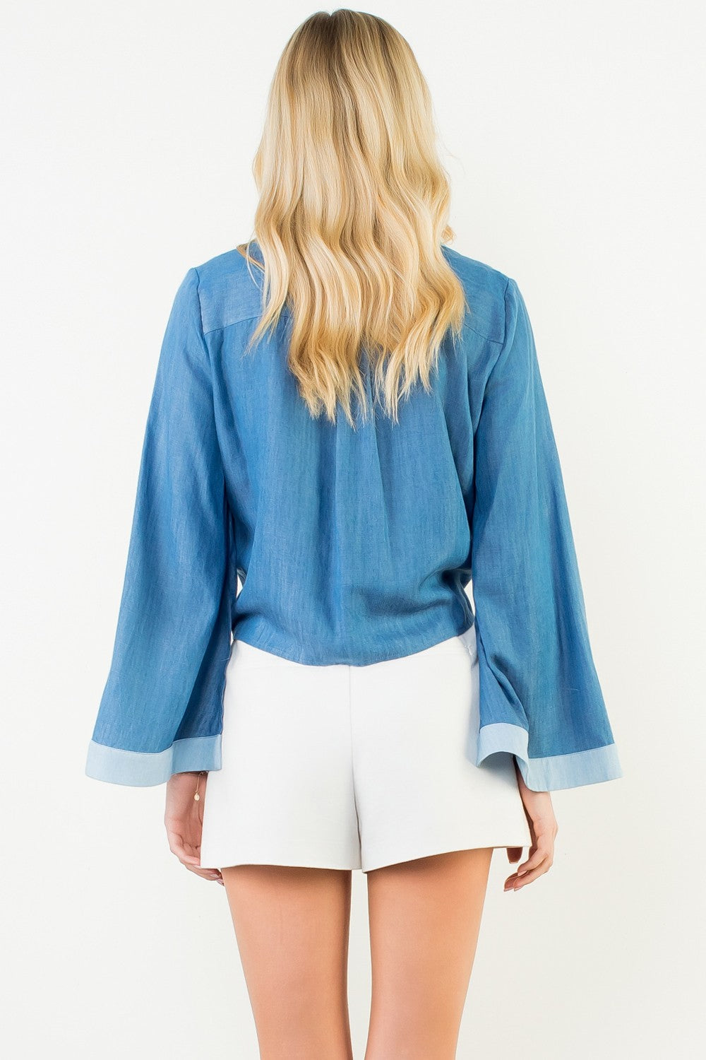 The Daily Tie Top—a long sleeve button-down that transforms your look with a charming tie knot detail. This isn't just another blouse; it's the piece you'll reach for when you want to look intentional without trying too hard. The crisp fabric drapes beautifully, giving you that polished appearance. Versatile enough to pair with anything in your closet, yet distinctive enough to make a statement.