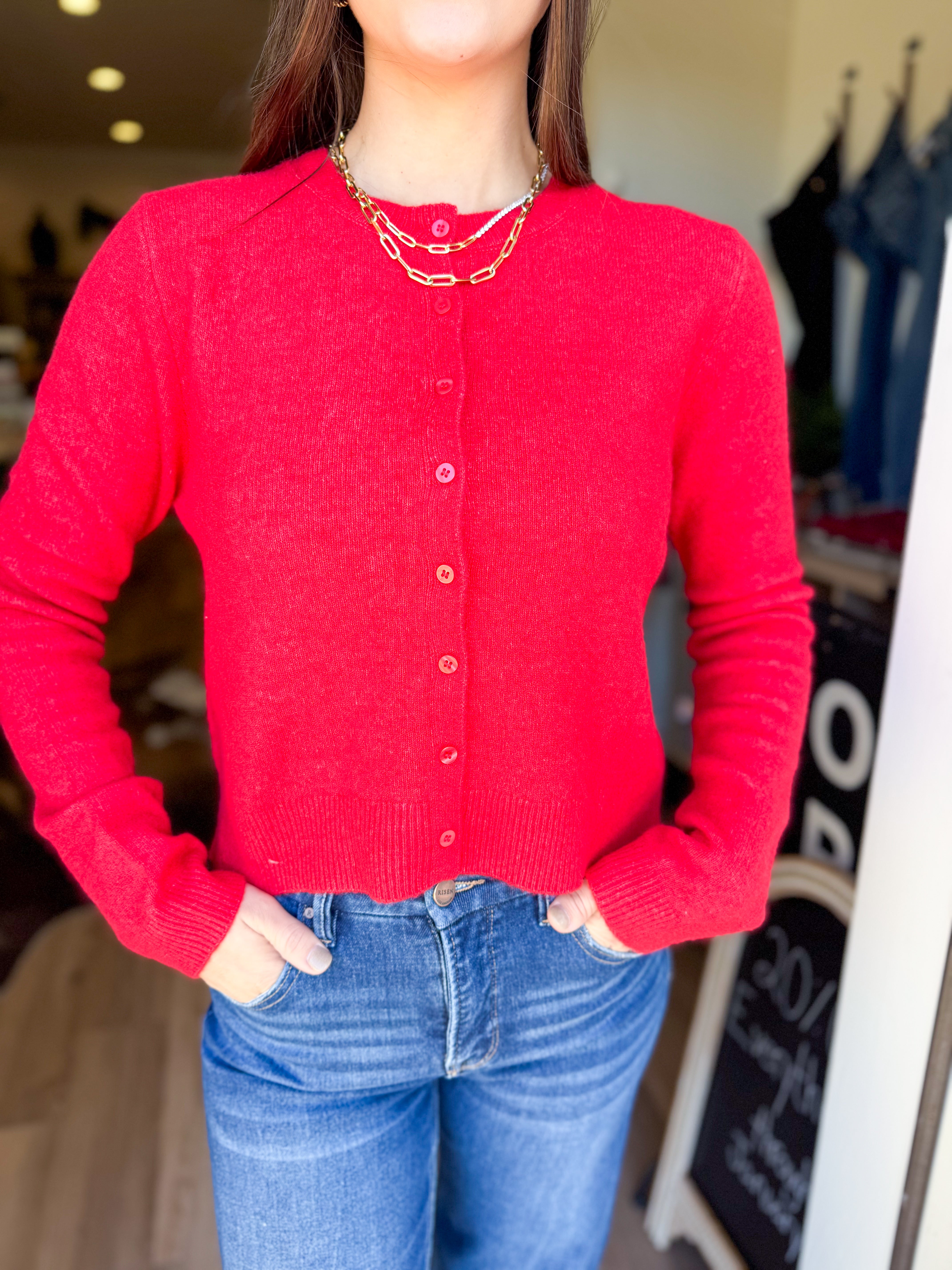 This relaxed crewneck cardigan is made from cozy sweater yarns with an easy button-up front that’s perfect for layering. Whether tossed over a tank or worn solo, it’s the ideal go-to for cozy, casual days.